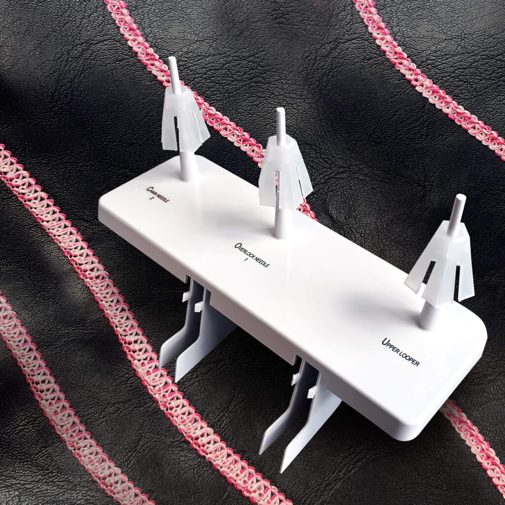 Le porte-bobines additionnel disponible pour les machines à coudre Coverlock Ovation, Gloria, Aspire ainsi que les machines à coudre Primo et Euphoria ouvre une nouvelle dimension en matière de possibilités de couture créatives. Cet accessoire astucieux, qui se fixe facilement au porte-bobines additionnel existant de la machine, fait toute la différence. Il permet d’intégrer des points de recouvrement encore plus efficaces, plus plastiques et plus tridimensionnelles dans les projets de couture. Les coutures semblent plus volumineuses et plus accentuées, ce qui confère aux créations une profondeur unique.