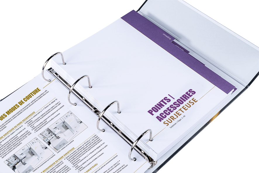 Ce livre comprend également des informations sur les aiguilles et les fils, des conseils d‘initiés ainsi qu‘un guide de recherche d‘erreurs. Ce compendium existe également pour nos surjeteuses et recouvreuses. Vous les trouverez chez votre revendeur baby lock !