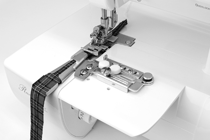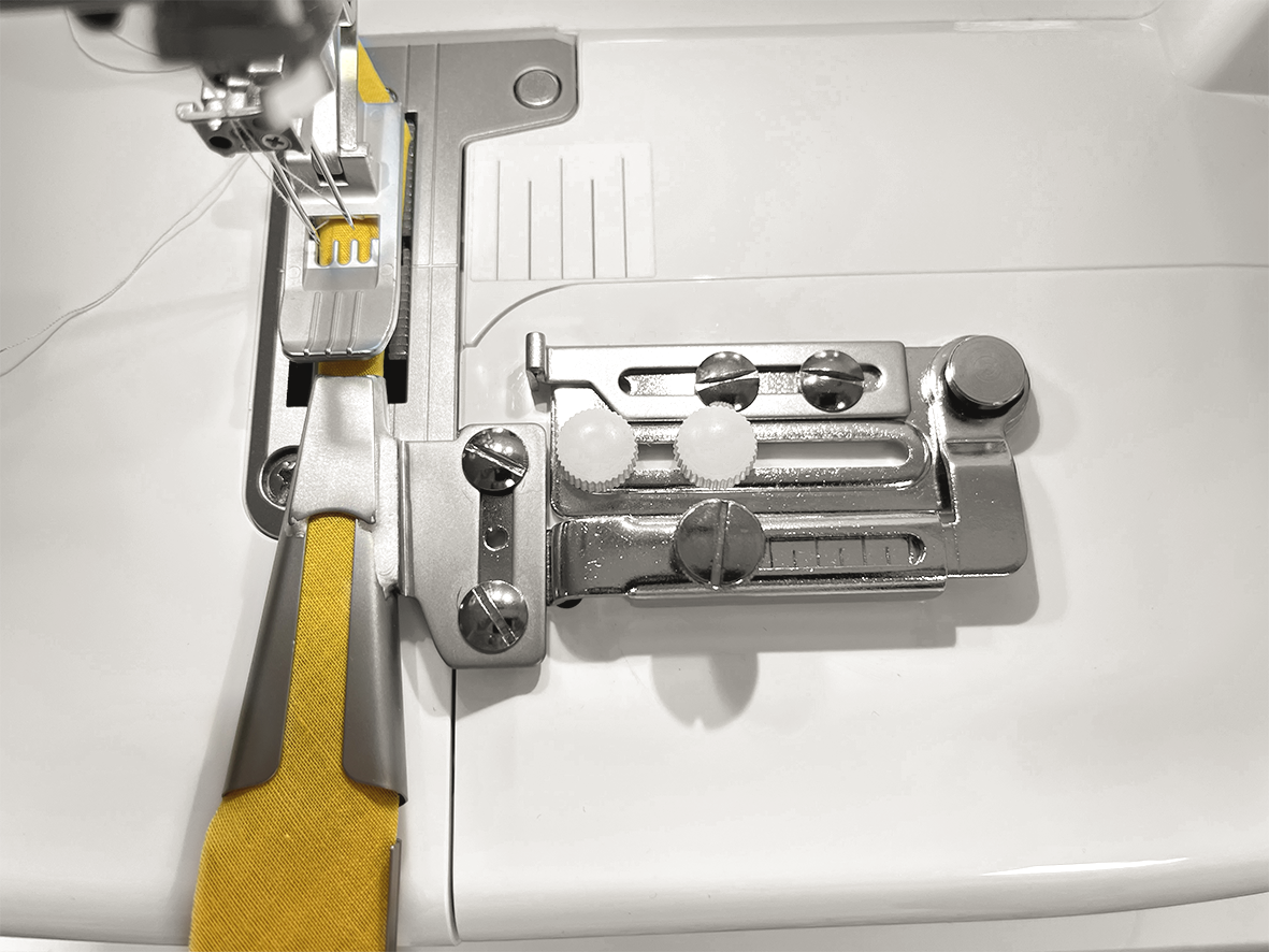 Avec le guide oscillant baby lock, vous passez sans effort du surjet normal à l’utilisation de vos appareils. L’appareil souhaité est monté une seule fois sur le guide oscillant et peut être facilement pivoté devant le pied-de-biche si nécessaire, puis remis rapidement sur le côté lorsqu’il n’est pas utilisé.