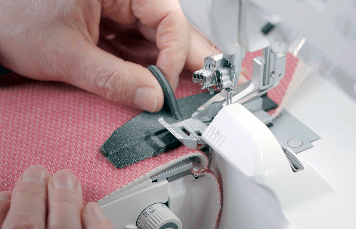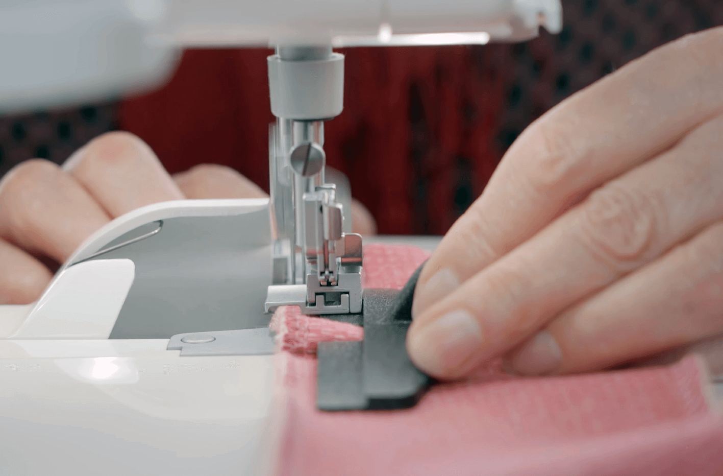 Pas de glissement du tissu : grâce à la pression uniforme du pied presseur, le tissu est entraîné avec précision.